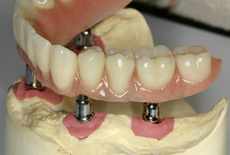 Nei casi di edentulia (Pazienti senza denti) la soluzione più confortevole che la Ca.Ma. srl propone è la protesi (dentiera) su impianti. Consiste nell’inserire da 4 a 6 impianti per arcata (nella maggior parte dei casi 4 impianti sono più che sufficienti) sui quali, a guarigione avvenuta, verrà agganciata una protesi. Questo sistema permette di sviluppare protesi molto sottili,poco ingombranti e senza resina sul palato, esteticamente molto belle e naturali, con una notevole stabilità che dura nel tempo, evitando al Paziente la necessità di utilizzare colle e adesivi per protesi. Le operazioni di pulizia quotidiana di queste protesi sono molto semplici e richiedono poco tempo.